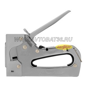 Металлический мебельный степлер Matrix Professional 40913 — инструмент с регулируемой мощностью удара, применяемый для закрепления листовых материалов на деревянных основаниях при помощи скоб типа 53 размером 6-14 мм. Подходит для работы с фанерой, оргалитом, ДВП, ДСП, пленкой и утеплителем. Продуманная конструкция позволяет быстро загружать скобы в скобоприемник, экономя время мастера. Рессорная пружина обеспечивает плавность работы. Степлер используют для сборки шкафов, обивки мягкой мебели, укладки ковровых покрытий и при выполнении прочих крепежных работ.