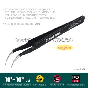 Пинцет антистатический антимагнитный прецизионный изогнутый 116мм. KRAFTOOL