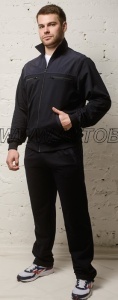 Верх - толстовки на молнии с аккуратным воротником-стойкой. Отрезная кокетка с отделкой из плащевки придаёт модели выразительность и добавляет защиту от ветра. На груди расположены два нагрудных кармана на молнии — удобное решение для хранения телефона, документов, например паспорта, проездных или небольших личных вещей, которые всегда должны быть под рукой. Ещё два боковых кармана с листочками обеспечивают дополнительное удобство. Рукава и низ изделия на манжете, что улучшает посадку и делает костюм практичным в носке.