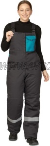 Полукомбинезон зимний женский "Бренд" тёмно-серый/бирюза